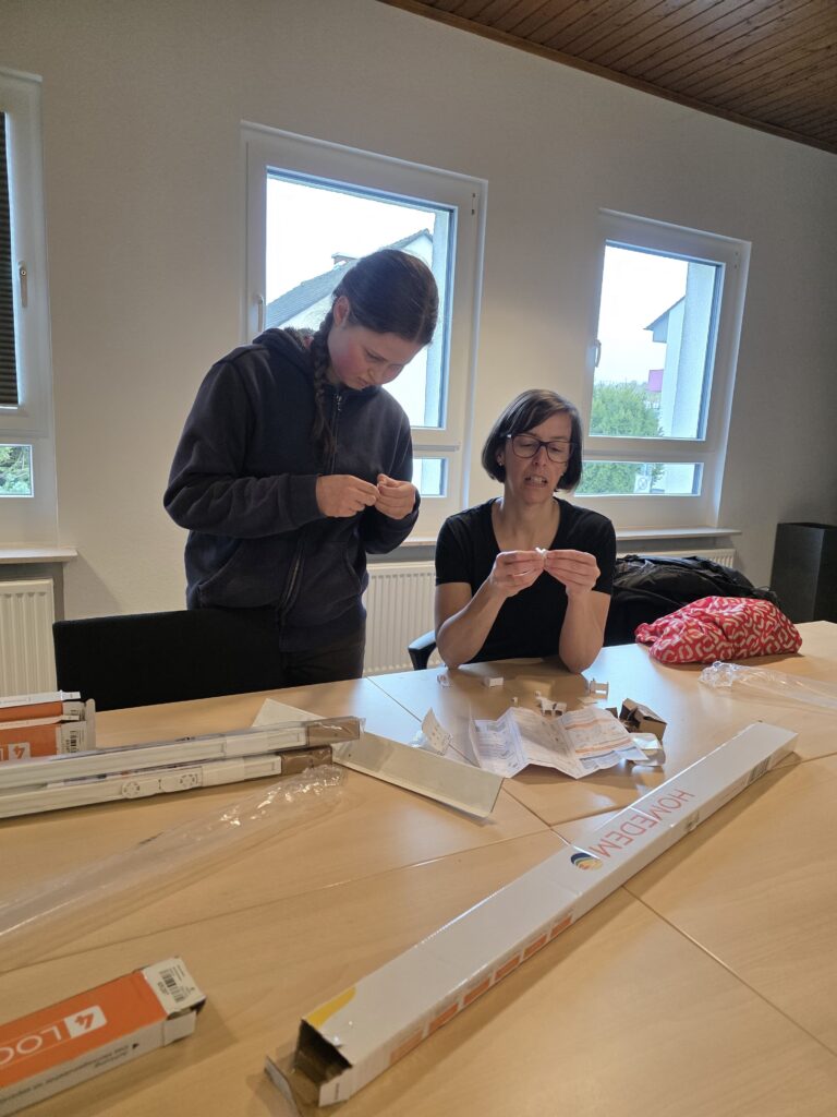 Es wurde im Keller aufgeräumt, die Fenster geputzt, neue Plissees im „Andreas-Hieronymi-Saal“ angebracht und in der neuen Küche dort die Steckdosen montiert.